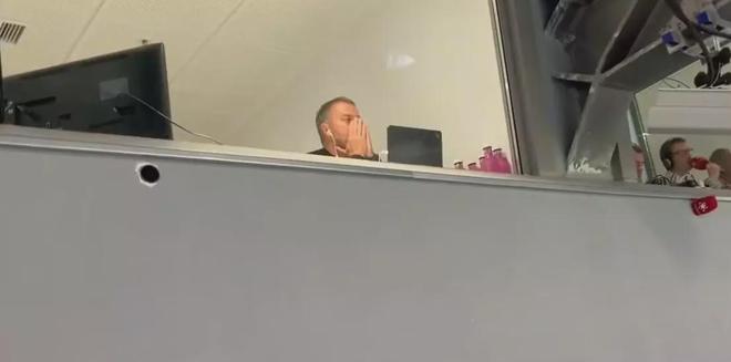 有趣的是,他的位置正好夹在加泰电台RAC1解说员琼·玛丽亚·普和皇马死忠球迷、西班牙国家电台SER评论员托马斯·龙塞罗之间。弗里克看到费尔明进球时激动庆祝,但也必须忍受周围皇马球迷的不友善举动。